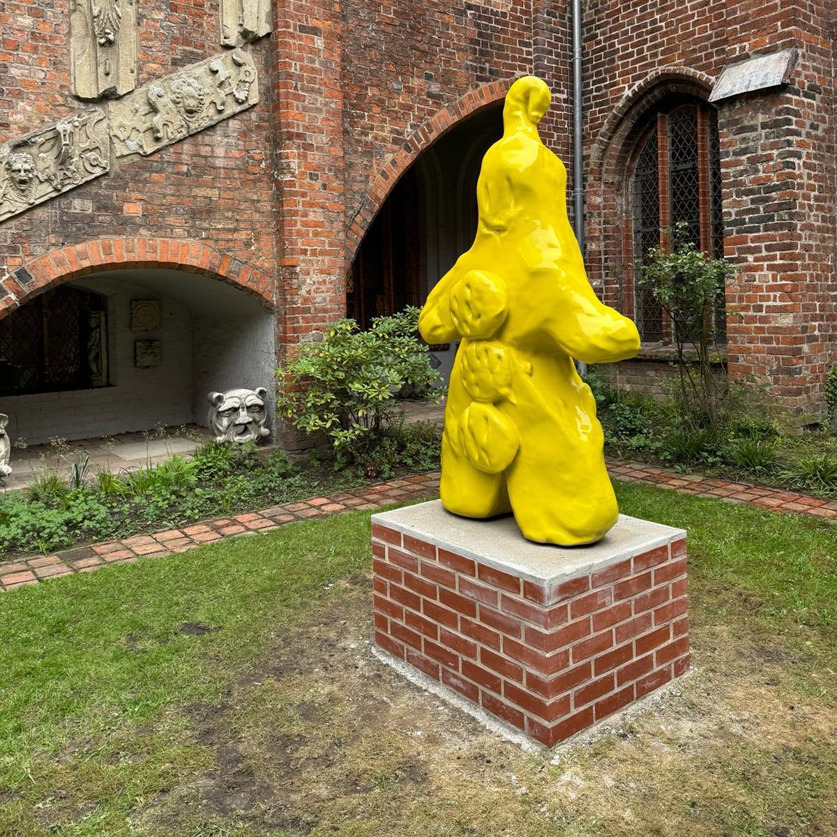 22 of these sculptures that stimulated the most discussion were selected to be shown in the exhibition “Hallo Lübeck. Dialoge mit der Kunsthalle St. Annen” in 2023. The works were shown on brick pedestals which references what is needed to physically create a city and how the inter-generational inheritance of a place can often be ignored, leaving damage and waste for the younger generation to fix.