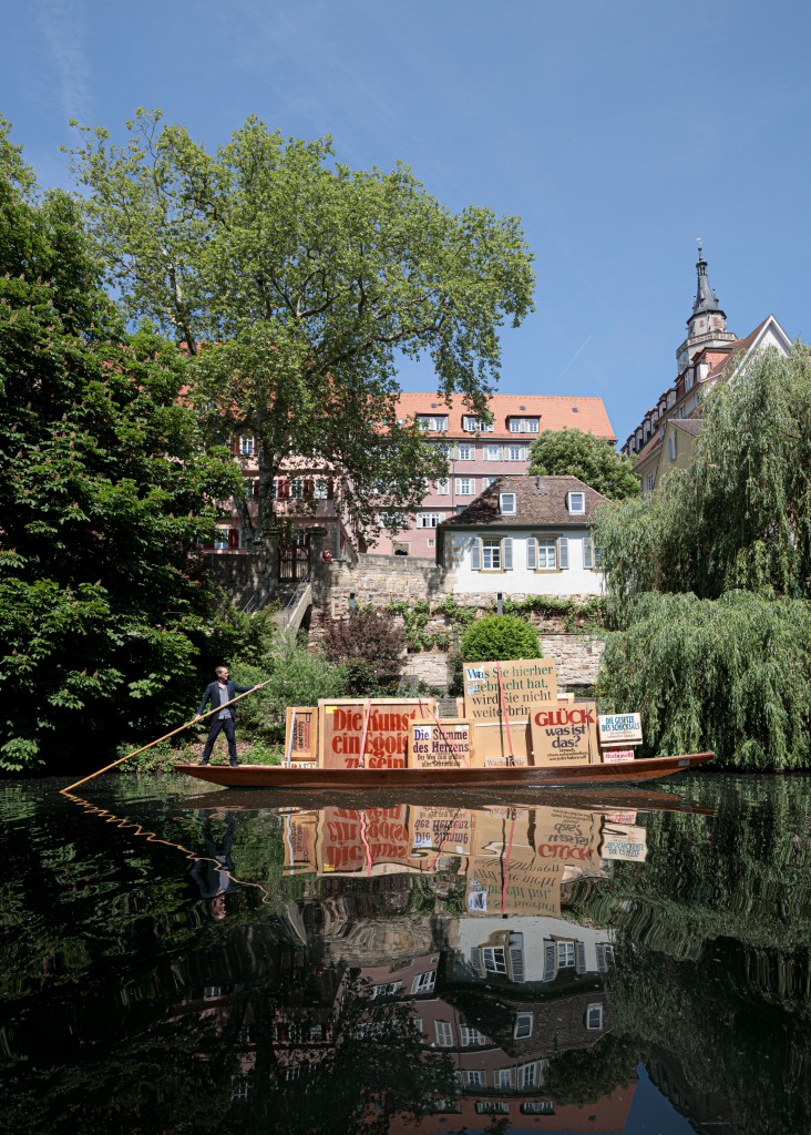 Getting close to the opening, Jankowski was seen floating down the picturesque river Neckar at the helm of a Stocherkahn, a charming wooden punt that promises a carefree day out in Tübingen. With effort, he propels the slender vessel forward by pushing a pole against the riverbed. It is at risk of
