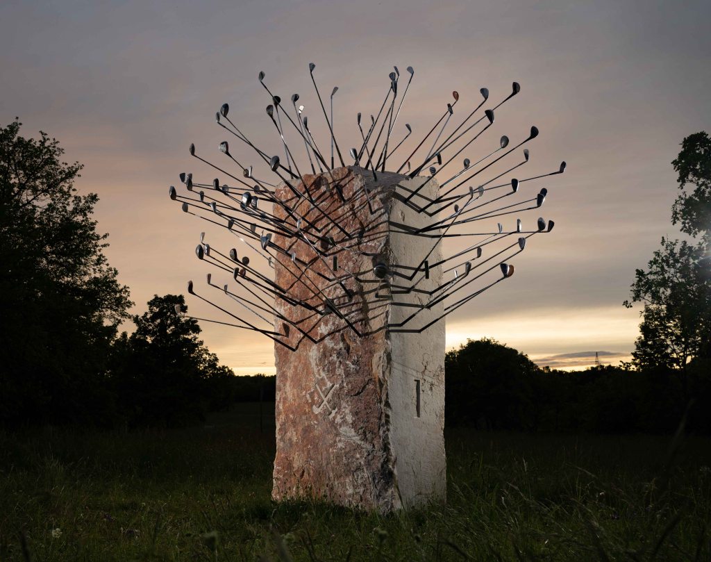 After the announcement of the winner, the participants placed 101 golf sticks into a prepared istrian stone which later was erected as the latest addition to the sculpture park. The symbol of a crossing hammer and golf club were engraved into two sides of the stone while a golf ball and the rectangular shape of a quarter stone on the other. In a park filled with carefully carved and formed sculptural pieces Jankowski’s rough block of stone, unaltered from the state it was harvested from the quarry stands out – the particular shape being chosen for its ease of movement, stacking and transport from the large industrial quarries from which the istrian stone comes and distributed internationally.