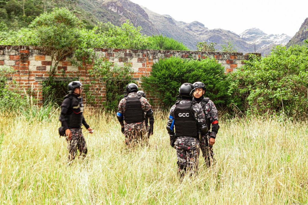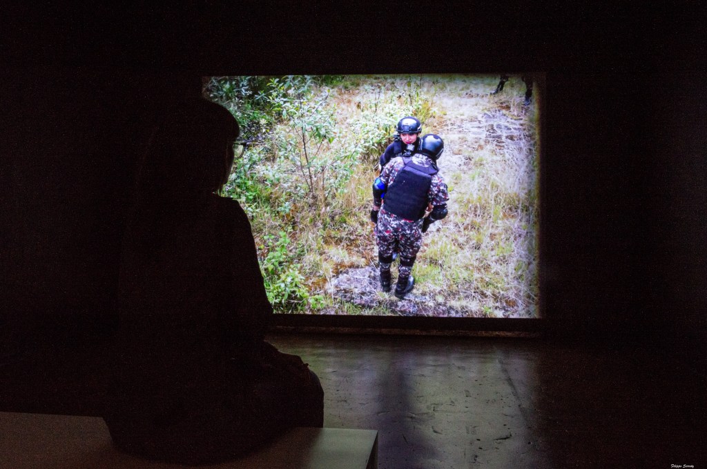 Member of the Guardia Ciudadana Cuenca (Citizens Guard) Photo of soldiers during production of video workSoldiers performing ‘smell maneuver’Image of video installation as a part of Quizá Mañana, 16th Biennale de CuencaInstallation of 18 perfume bottles, Quizá Mañana, 16th Biennale de CuencaInstallation of perfume bottles